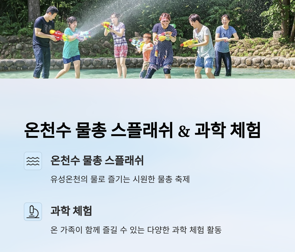 - 오후 3시: 온천수 물총 스플래쉬 (온천로 일대)